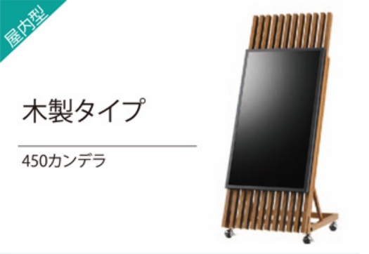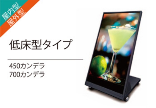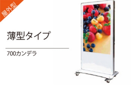 雨に強く、屋外で使用可能なモデルです。 輝度が高いので、日光の当たる場所でも見えやすく店頭に設置しての 集客にオススメです。