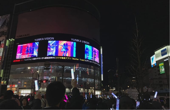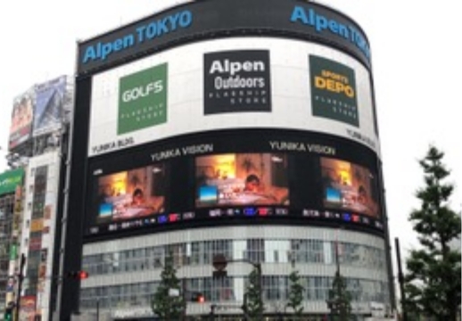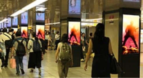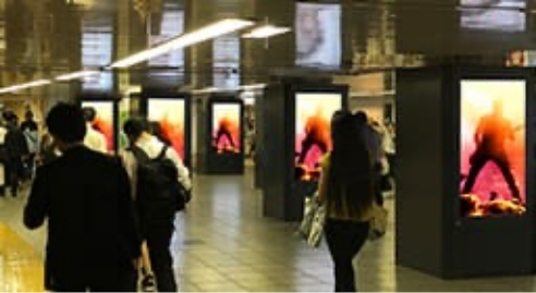 新宿駅周辺、渋谷駅スクランブル交差点周辺、大阪道頓堀周辺など有名なビジョンを全国約100ヶ所にて広告放映。
