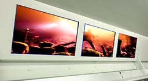 JR各線では大ガードを通過する車両内からもユニカビジョンの映像を見ることができます。
