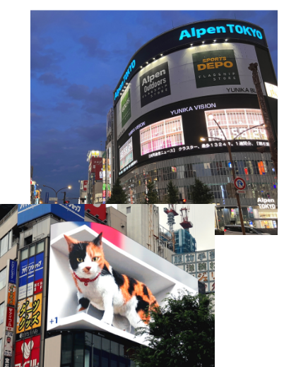 ユニカビジョンの運営により培ってきた知見、関連企業や行政機関とのパートナーシップを活かし、街頭ビジョンの運用代行・コンサルティング業務も行っています。SNS や各種メディアで取り上げられたクロス新宿ビジョンの「3D 巨大猫」など、話題性の高い媒体作りに寄与しています。